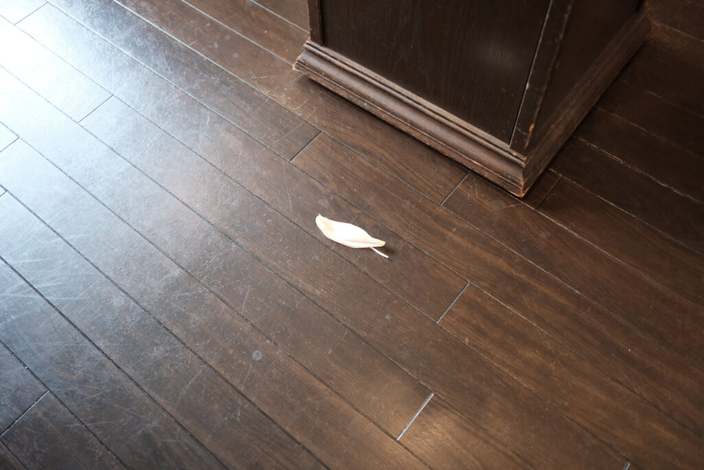そんなこんな待っていると、席の横にあった百合の花びらがひらひらと舞い散りました。風情があって良いね〜。