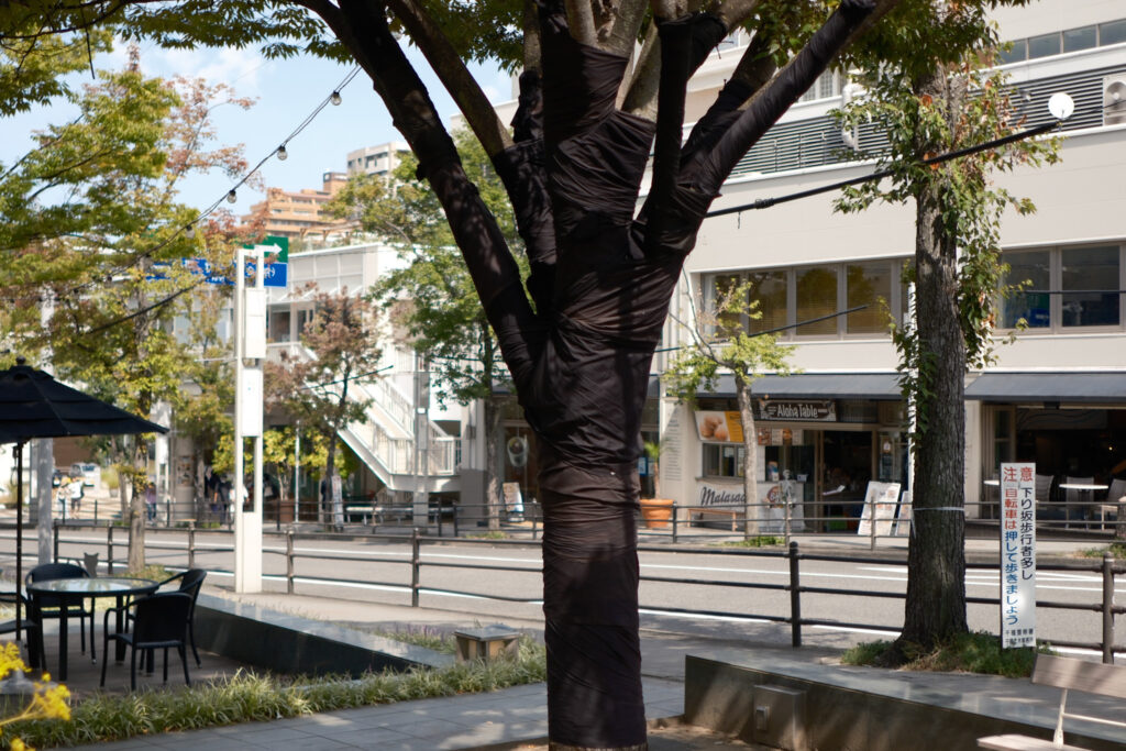 こっちの木も黒い装いがハロウィンっぽい。いや、これは関係ないか。