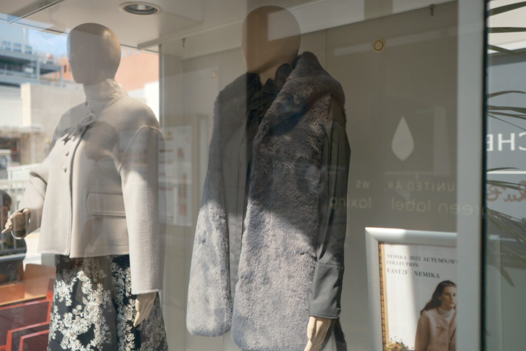うひゃー!もう冬服が展示してあるじゃん。流石に暑そう!